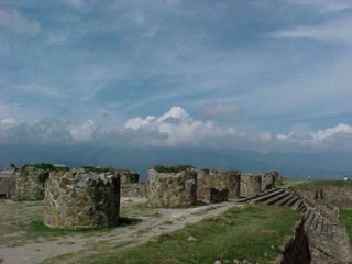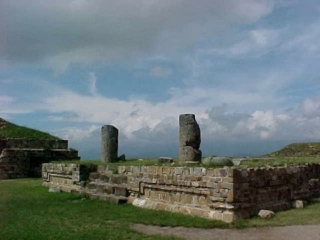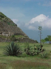 Monte Alban flourished as the capital of the Zapotec civilization from about 500 B.C. through 800 A.D. Its great structures, formed of irregular stones and mud faced with cut stone and sometimes stucco, many decorated with elaborate reliefs, command breathtaking view of the surrounding valleys.